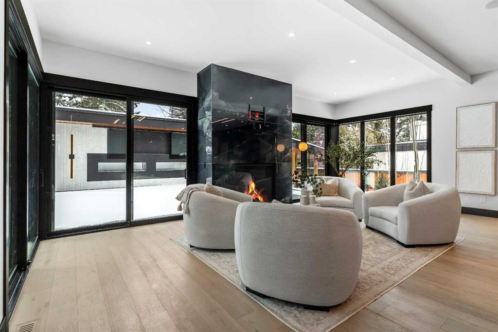 OPEN HOUSE MARCH 7 & 8th from 2 to 4pm.Discover unparalleled luxury in one of Calgary’s most prestigious communities. This architectural masterpiece by Trojan Custom Homes sets a new standard of sophistication, spanning over 8,670 sq. ft. of meticulously designed living space on a sprawling 0.30-acre estate lot. Nestled among the exclusive Calgary Golf & Country Club, Glenmore Reservoir, and the breathtaking Elbow River Valley, every detail has been thoughtfully curated to offer the pinnacle of modern elegance. From the moment you enter the grand foyer, you’re greeted by soaring ceilings, expansive walls of glass, and a seamless connection between nature and contemporary design. The main floor boasts a striking wine wall that commands attention, an executive office that exudes professionalism, and a world-class chef’s kitchen, complete with dual oversized islands, custom cabinetry, and top-tier appliances. Expansive glass doors blur the lines between indoors and outdoors, leading to a stunning covered entertainment lounge, complete with dual fireplaces, bespoke lighting, and a fully equipped outdoor kitchen—perfect for hosting guests or simply enjoying the view. The resort-inspired backyard is a private oasis, featuring an automated pool, an illuminated water wall, and multiple lounging areas designed for ultimate relaxation or sophisticated entertaining. Upstairs, the private primary suite is a true retreat, with a custom onyx fireplace, a spa-inspired ensuite, a private enclosed terrace, and a boutique-style dressing room. The lower level is no less impressive, offering a wet bar, family lounge, home theatre, fitness and yoga studio, and a guest suite, ensuring comfort and convenience at every turn. Additional luxuries include a heated triple garage, snow-melt driveway, automated irrigation, and an advanced suite of home automation systems. A true architectural icon of Bel-Aire, this residence blends privacy, innovation, and timeless elegance—surpassing every expectation and defining the essence of luxury living in Calgary.