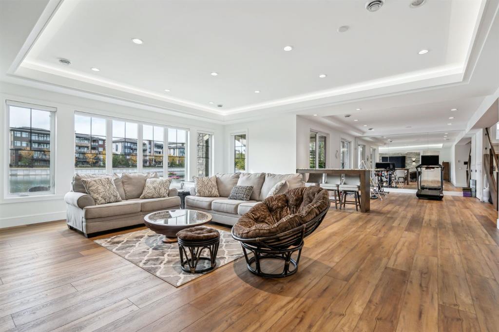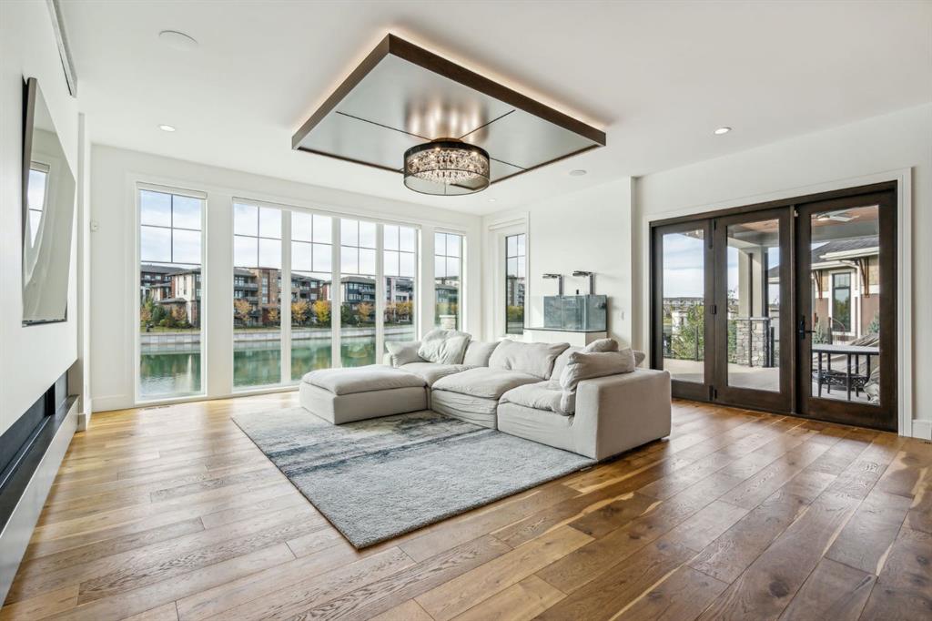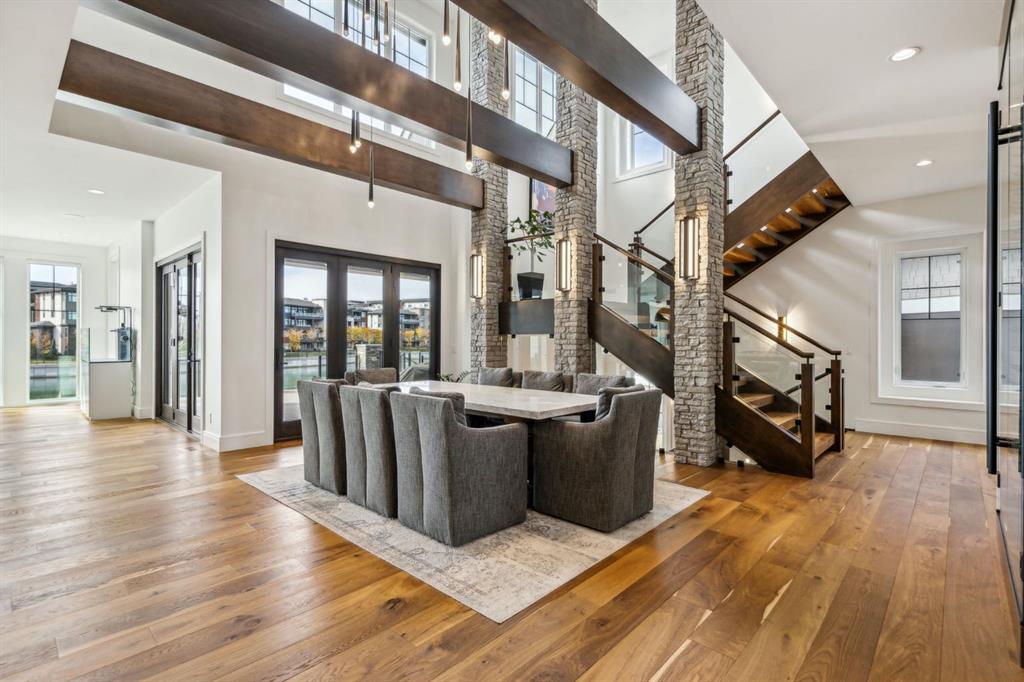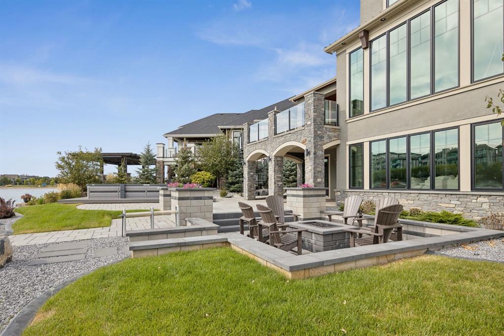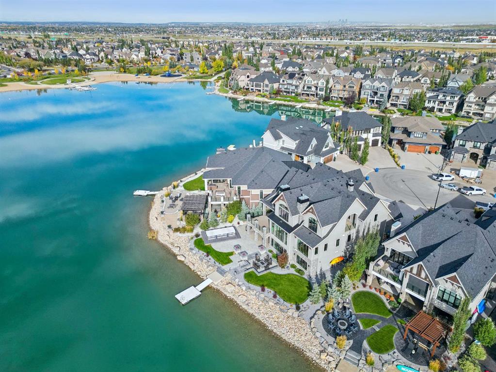 WELCOME to the CROWN JEWEL of Mahogany Island! This RARE lakefront ESTATE by Calbridge Homes is ONE of only 22 EXCLUSIVE residences in this gated enclave. Of these, only 10 homes boast a south-facing backyard, making this property ONE of just TEN in the entire city with this coveted feature. Privacy, sophistication, and UNMATCHED craftsmanship define this 6,650 sq ft MASTERPIECE. - Arrive in style through wrought iron gates and an illuminated concrete courtyard. Step inside to an OPEN, BRIGHT, and TIMELESSLY ELEGANT home where MODERN LUXURY meets CLASSIC CHARM. SOARING floor-to-ceiling windows frame BREATHTAKING panoramic lake views, while natural light floods the airy interiors. - The heart of the home? A DREAM CHEF'S KITCHEN, featuring a 16-ft exotic granite waterfall island, top-tier Miele appliances, a full-size fridge/freezer, built-in oven, steam oven, coffee maker, and a 6-burner gas stove with induction burner. A butler’s pantry, second fridge, and walkthrough pantry ensure effortless entertaining. -The MAIN FLOOR is a SHOWPIECE, with intricate cornice moldings, wood beams, white oak wide plank floors, and an 84-inch horizontal fireplace. Folding patio doors open to a MASSIVE covered deck, -- indoor-outdoor living at its finest! - UPSTAIRS, the PRIMARY SUITE is a TRUE SANCTUARY, boasting 17-ft ceilings, a SPA-INSPIRED ENSUITE with a 9-ft glass shower, heated floors, a fireplace, and a walk-in closet with a quartz island. Two additional BEDROOMS, each with ensuites and walk-in closets, share a COVERED PATIO overlooking the canal. The BONUS ROOM, complete with a WET BAR and VIEW DECK, is an entertainer’s dream. - The WALKOUT LOWER LEVEL is an ENTERTAINMENT OASIS, featuring a MEDIA ROOM with a 120” screen, a WET BAR with designer backsplash, a BUILT-IN ICE CREAM MAKER, games room, fitness area, SAUNA, family room, and a fourth bedroom. - OUTDOOR LIVING is unparalleled, with a SOUTH-FACING backyard featuring a BRAND-NEW BBQ KITCHEN, multiple seating areas, fire tables, a SWIM SPA, and a PRIVATE DOCK. - Practical luxury includes a HEATED TRIPLE TANDEM + SINGLE GARAGE with EV charging and new cutting-edge SMART HOME TECHNOLOGY. HEPA Filtration System with UV Light. - This is MORE than a home—it’s a LIFESTYLE. Don’t miss this ONCE-IN-A-LIFETIME opportunity to own Calgary’s MOST EXCLUSIVE lakefront living.