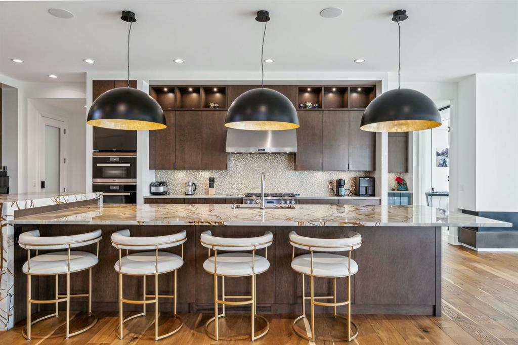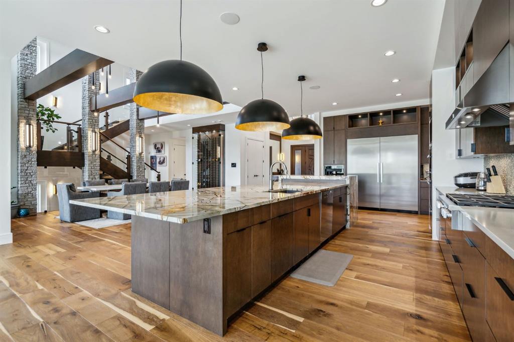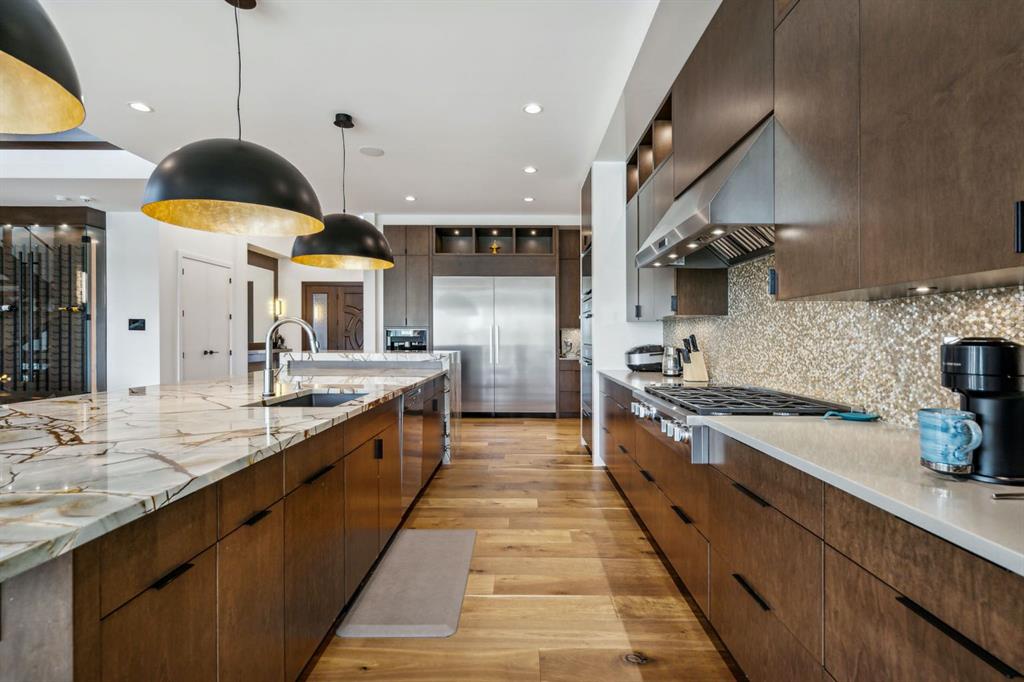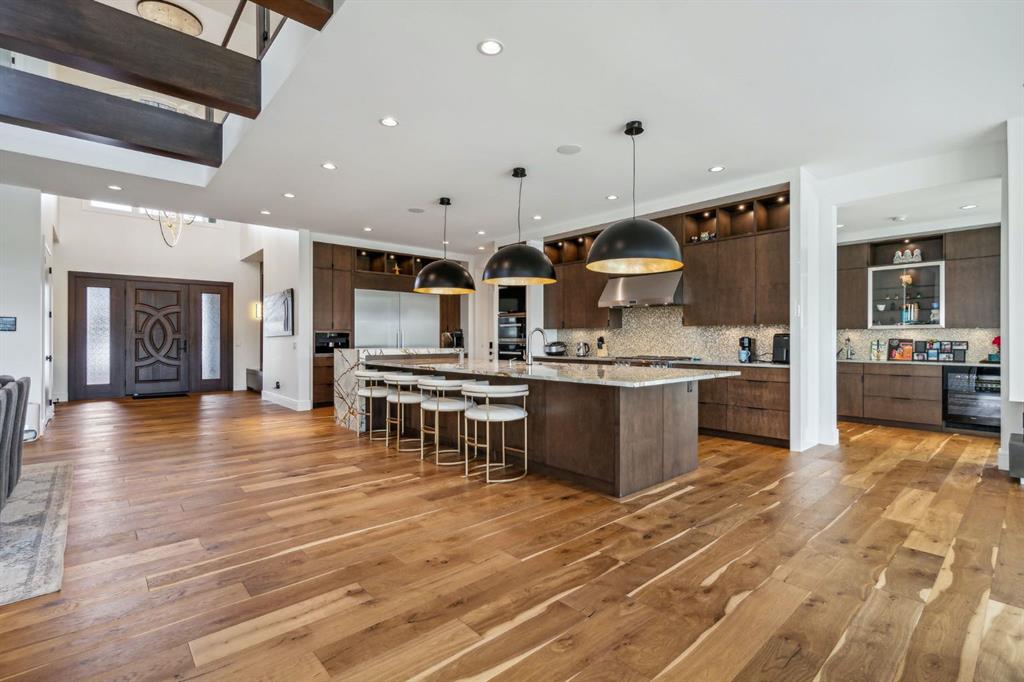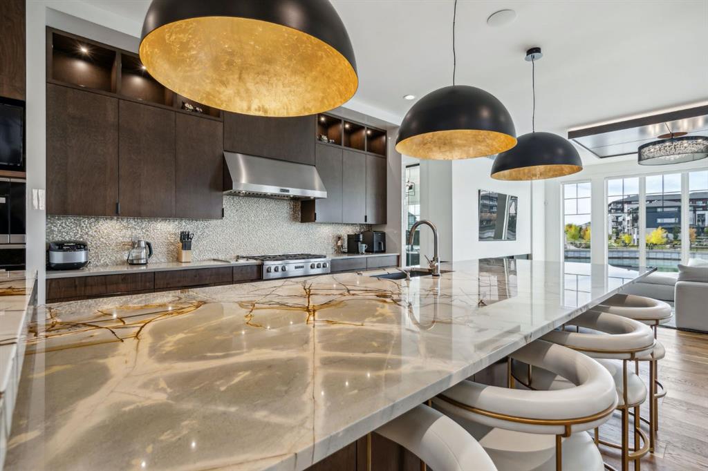 WELCOME to the CROWN JEWEL of Mahogany Island! This RARE lakefront ESTATE by Calbridge Homes is ONE of only 22 EXCLUSIVE residences in this gated enclave. Of these, only 10 homes boast a south-facing backyard, making this property ONE of just TEN in the entire city with this coveted feature. Privacy, sophistication, and UNMATCHED craftsmanship define this 6,650 sq ft MASTERPIECE. - Arrive in style through wrought iron gates and an illuminated concrete courtyard. Step inside to an OPEN, BRIGHT, and TIMELESSLY ELEGANT home where MODERN LUXURY meets CLASSIC CHARM. SOARING floor-to-ceiling windows frame BREATHTAKING panoramic lake views, while natural light floods the airy interiors. - The heart of the home? A DREAM CHEF'S KITCHEN, featuring a 16-ft exotic granite waterfall island, top-tier Miele appliances, a full-size fridge/freezer, built-in oven, steam oven, coffee maker, and a 6-burner gas stove with induction burner. A butler’s pantry, second fridge, and walkthrough pantry ensure effortless entertaining. -The MAIN FLOOR is a SHOWPIECE, with intricate cornice moldings, wood beams, white oak wide plank floors, and an 84-inch horizontal fireplace. Folding patio doors open to a MASSIVE covered deck, -- indoor-outdoor living at its finest! - UPSTAIRS, the PRIMARY SUITE is a TRUE SANCTUARY, boasting 17-ft ceilings, a SPA-INSPIRED ENSUITE with a 9-ft glass shower, heated floors, a fireplace, and a walk-in closet with a quartz island. Two additional BEDROOMS, each with ensuites and walk-in closets, share a COVERED PATIO overlooking the canal. The BONUS ROOM, complete with a WET BAR and VIEW DECK, is an entertainer’s dream. - The WALKOUT LOWER LEVEL is an ENTERTAINMENT OASIS, featuring a MEDIA ROOM with a 120” screen, a WET BAR with designer backsplash, a BUILT-IN ICE CREAM MAKER, games room, fitness area, SAUNA, family room, and a fourth bedroom. - OUTDOOR LIVING is unparalleled, with a SOUTH-FACING backyard featuring a BRAND-NEW BBQ KITCHEN, multiple seating areas, fire tables, a SWIM SPA, and a PRIVATE DOCK. - Practical luxury includes a HEATED TRIPLE TANDEM + SINGLE GARAGE with EV charging and new cutting-edge SMART HOME TECHNOLOGY. HEPA Filtration System with UV Light. - This is MORE than a home—it’s a LIFESTYLE. Don’t miss this ONCE-IN-A-LIFETIME opportunity to own Calgary’s MOST EXCLUSIVE lakefront living.