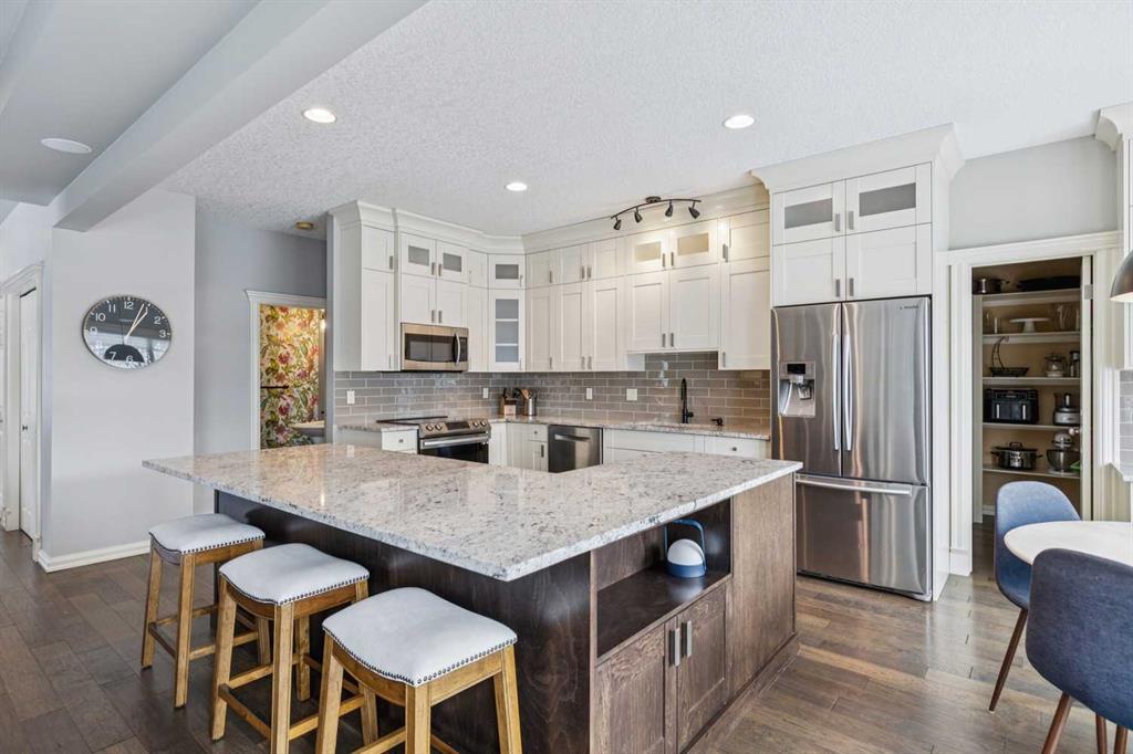 This Strathcona Park home is an exceptional choice for families. Built with impeccable craftsmanship, this home has been very well maintained including numerous updates designed to enhance comfort, style, and convenience. With a rare 4 upper bedrooms plus lower-level guest room, 3.5 bathrooms and 2550sq.ft. (3703 sq.ft developed living space), this home has everything a busy family needs. You’ll find this corner-lot gem on a quiet cul-de-sac and will instantly notice its fantastic curb appeal. Thoughtful landscaping creates privacy in and outside the home while still allowing lots of natural light to flow through the home’s numerous windows. Step inside the entrance way and imagine entertaining friends and family in the inviting seating area and adjacent dining space – perfect for hosting celebrations and holidays. The living room and dining area have a cozy and calm elegance. Rich hardwood floors throughout the main level bring a welcoming warmth, complemented by the abundance of natural light. Beyond the spacious dining area, you’ll find the kitchen and family room. These two spaces are clearly the heart of the home. The kitchen is ready for anything! With stainless steel appliances, timeless custom cabinetry, incredible storage, and elegance design accents like granite countertops, you have everything you need, whether you are making a snack or hosting a dinner party. Large windows bring in a ton of natural light in the day while recently updated light fixtures deliver stylish illumination in the evening. After dinner, you’ll want to relax by the family room area’s cozy fireplace, framed by beautiful custom built-ins. This space is sure to inspire family connection and catching up after a long day! The main level also features a recently renovated mudroom/laundry room with lots of storage – ideal for helping busy families in the go stay organized. And the attached oversized garage is perfect for keeping your cars and bikes safe from the elements. Upstairs, the over-sized primary bedroom could be your new daily retreat, a place to unwind and recharge. The ensuite’s deep soaker jet tub will leave you without a care in the world while the timeless design elements of the rest of the ensuite will make it seem as though you have a private deluxe spa in your home. The large walk-in closet will keep your clothes and accessories organized, so looking your best will be easier. The upper level also has three additional large bedrooms with lots of space to do homework, hobbies and more! A bonus room provides an excellent location for a kid playzone, exercise space, home office – whatever best suits your lifestyle! Downstairs, the professionally developed basement creates even more functional, well-designed space living space for your family and friends to enjoy. In the warmer months, this home’s south facing backyard is a wonderful oasis. This house has so much to offer – book a viewing and see for yourself what makes this an amazing family home.